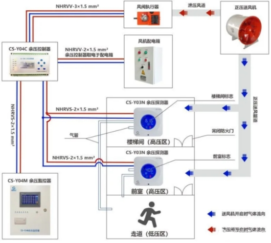 3、余壓控制器由風機配電箱供電,擔任給余壓探測器和泄壓閥執(zhí)行器供電。