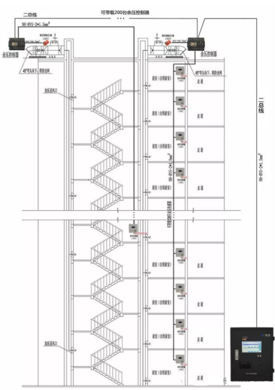 余壓監(jiān)控系統(tǒng)的目的為了確保分散通道的余壓在火災(zāi)產(chǎn)生時可以處于有用的受控狀況,既能阻撓煙氣的擴(kuò)散,又能使逃生者比較輕松翻開防火門逃生,保護(hù)人員安全分散。