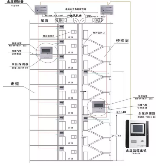 現(xiàn)在加壓送風體系本身,沒有才能來判斷加壓區(qū)是否堅持一定壓力,或加壓區(qū)泄露過大,壓力達不到規(guī)范,起不到防煙作用,或因壓力過大而形成分散門阻塞,而怎么能及時探測加壓區(qū)壓力狀況,以調(diào)整加壓送風量,使樓梯間和前室堅持相對安穩(wěn)的余壓是一個關鍵問題。因而設置余壓監(jiān)控體系,是確保加壓送風體系在火災中完美使用的必然選擇。 設計裝置余壓監(jiān)控體系,可有用解決分散門兩邊壓差過大而導致門無法正常敞開的毛病,確保分散通道的安全暢通,使加壓送風設備處于合理、有用的作業(yè)狀況,為了在災情狀況下保證了人員的分散和解救。