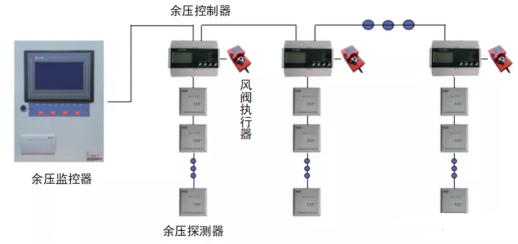 余壓監控系統由余壓監控器(主機)、余壓控制器、余壓探測器、風閥執行器、系統監控專用軟件等部分或全部設備組成。以下為某品牌預壓檢測系統設備的系統結構與應用圖例,供參考。
