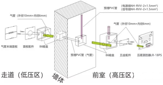 在前室、樓梯間壓力(壓差)傳感器裝置之前,建議按照下圖做預(yù)埋處理,裝置將愈加方便,且愈加漂亮。