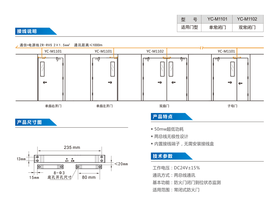50mw超低功耗;兩總線無(wú)極性設(shè)計(jì);內(nèi)置接線端子、無(wú)需安裝接線盒。
