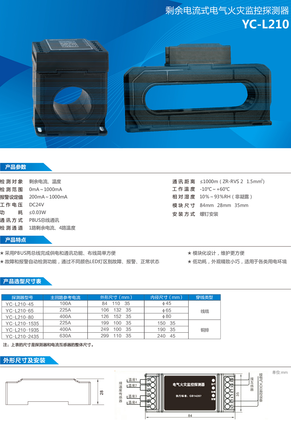 YC-L210 剩余電流電氣火災監(jiān)控探測器